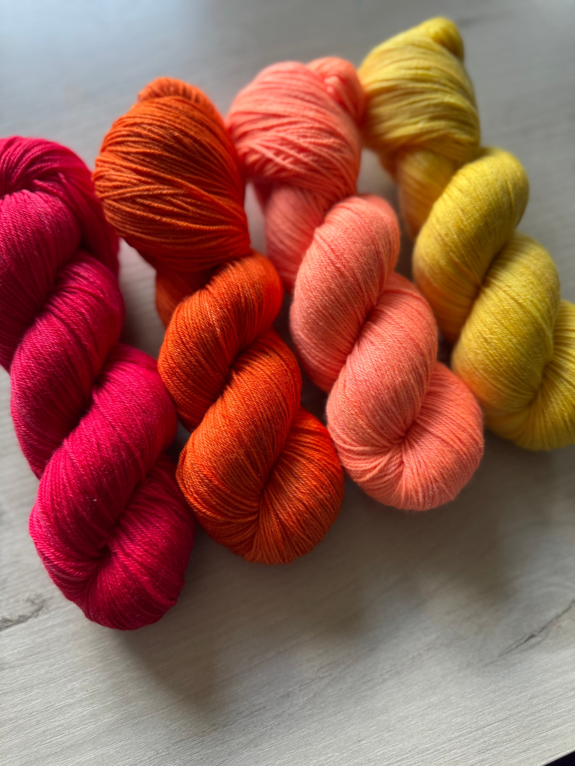 The Crayon Box collection is made up of 16 Solid/Tonal colourways named after crayon colours to provide those staple colours that will make a beautiful solid colour project, pair great for colorwork or provide options to pair with your more variegated skeins!